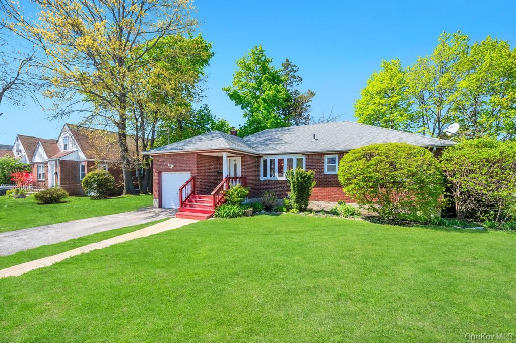 Welcome home to this beautifully maintained ranch offering the perfect blend of comfort, character, and opportunity. Step inside to an open-concept layout, ideal for everyday living and effortless entertaining. The spacious dining room sits seamlessly off the bright, airy living room, where oversized bay windows flood the space with natural light from sunup to sundown. Three generously sized bedrooms and a full bath complete the main level, all set on a fully fenced corner lot offering privacy, curb appeal, and room to roam. The full unfinished basement with its own outside entrance is a blank canvas brimming with possibility - think extended living space, home gym or rec room. Don't miss this Hempstead gem, opportunity like this doesn't last!